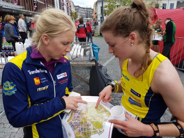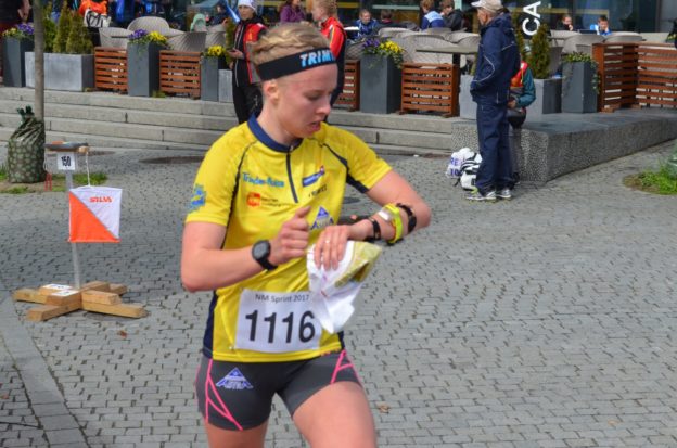 Lars S Skjeset og Eirin Svanøe-Hafstad ble best av våre under NM sprint på Hamar i dag. Lars ble nummer 11 og Eirin nummer 18 i seniorklassene. Lars kom i mål 41 sekunder fra medalje etter et jevnt godt løp. Eirin var uheldig med veivalget til andreposten, og tapte bortimot 40 sekunder på det. Etter det løp hun meget godt, og kom i likhet med Lars inn til premieplass. Carl Petter Lyngen ble nummer 25 i finalen. Bilde: (Kine Sofie og Eirin diskuterer løypa etter målgang)