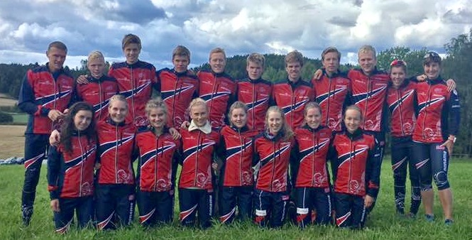 Eirin og Stian er ferdige med sine tre første konkurranser i senior-landslagsdrakta. Og har i Halden høstet gode erfaringer fra hvordan det er å konkurrere på dette nivået. (På bildet har vi hele landslagstroppen).