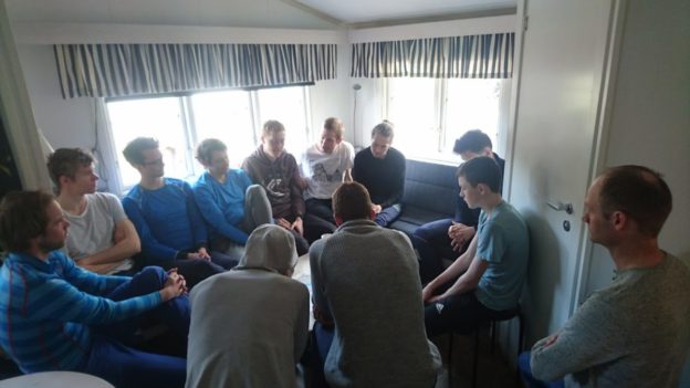 Gode forberedelser gjennom vinteren, på påskesamlinga, og ikke minst på precampen, var med på å gi oss et nytt flott stafettresultat. På bildet er det samling kvelden før start der taktikken for hver enkelt etappe legges i detalj.