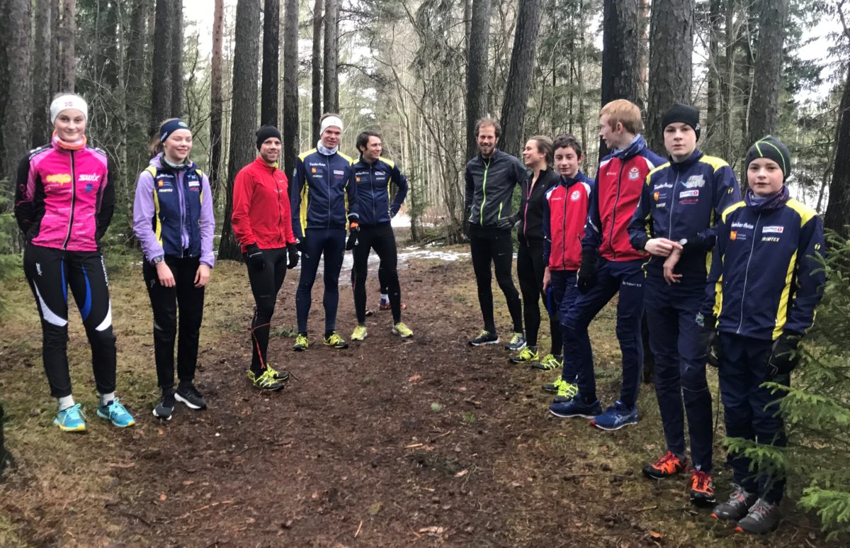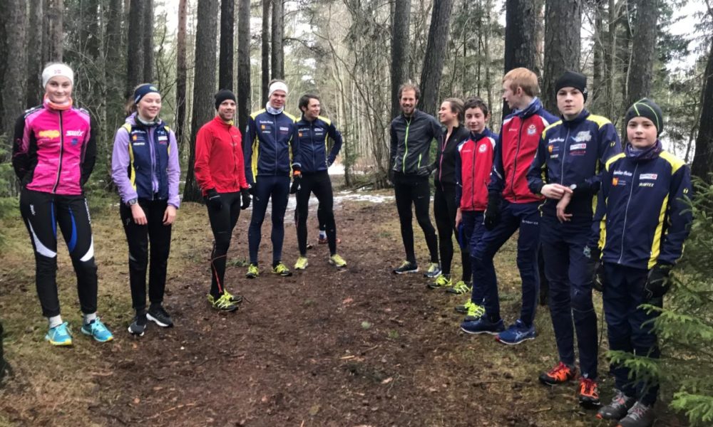 Tjuesju frolinger deltok på Skallstuggusamling i helga. Samlinga startet med skitrening fredag kveld. På lørdag var det intervall på barmark på Ørin, sesongplanlegging, skitrening og o-teknisk teori på kvelden. Søndag ble samlinga avsluttet med mer skitrening. Ei skikkelig hyggelig samling med trivelige folk! På bildet over er Trude Markhus, Aleksander Tanem Iversen og Martin Vehus Skjerve fra Verdal OK på plass for å løpe Ørin-intervall sammen med Matilde, Lars, Stian, Ulf, Simon, Eef, Tobias og Magnus.