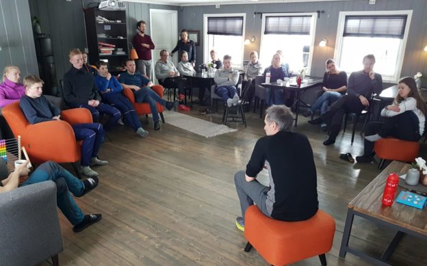 Etter denne økta hadde Arild et fint opplegg sammen med Eirin der de snakket sammen om sesongen 2018. Gode sesongforberedelser med god sesongstart som førte til internasjonale oppgaver, mye reising, mange løp, litt sykdom og skader, flott oppkjøring mot NM i september som endte med at sesongen var over dagen før NM startet. Løperkne var et faktum. Videre ble løperne tatt med på reisen etter NM-uka med frustrasjon over skaden, motivasjon til å komme tilbake, opptrening og satsing mot ny sesong. Deltagerne på samlinga ble tatt med inn i opplegget med egne erfaringer og meningsutvekslinger. Det ble mange gode diskusjoner og innlegg ut av dette.