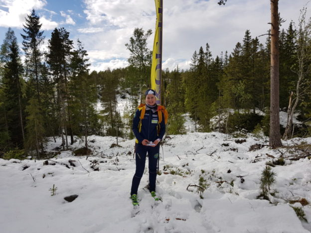 Utrolig mange tøffinger møtte opp på dagens O-sjuer i Gjeldsåsen. Snøen hadde lavet ned store deler av natta og lagt et 12 cm. tykt lag med blaut nysnø. Etter ei skikkelig regnskur med vind stilnet det og sola kom fram. Rene påskestemning. Albert laget snømann med gulrotnese og ungene koste seg i småtrolløypa. Litt vanskelig ble det i O-løypene, da stiene var nedsnødd. Heldigvis var det sporsnø og løypeleggerne Eirin og Trond hadde lagt igjen spor.