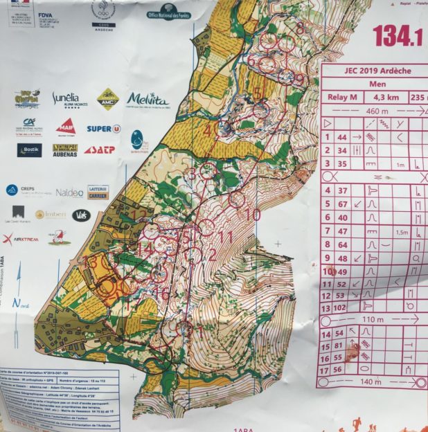Tobias viste ingen respekt for de to norske lagene med 19-20åringer. Han klinket til når sjansen bød seg, og kom før sine eldre konkurrenter i mål. Med 7.plass på etappen og to gode løp fredag og lørdag, er han strålende fornøyd med oppholdet i Frankrike. Løpene viser at han holder farten til de beste juniorene i Europa. Og med litt mer erfaring fra ulike terrengtyper kommer også sikkerheten i o-teknikken.