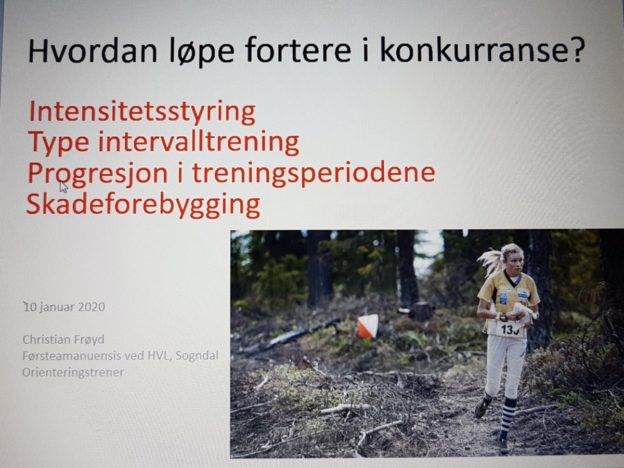 Etter ei forfriskende treningsøkt fredag ettermiddag, startet vi ei ny Skallstuggusamling med foredrag av mangeårig trener Christian Frøyd. Han kjørte foredraget via Skype fra Sogndal. Foruten løpere, ledere og foreldre som var på Skallstuggu, hadde vi med oss løpere på nett i Gøteborg, Trondheim, Oslo, Nederland og Gran Canaria.