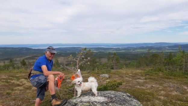 forhold i fjellet, kom over kun en liten snøfonn nord for Storlivola. Hadde god hjelp med postutsetting av pappa Ove Haugskott og Luna. Denne posten ligger rett ved Davebustaden med en kjempeutsikt mot Levanger, Verdal og Trondheimsfjorden.