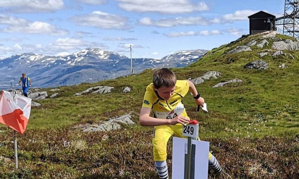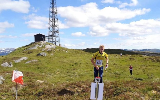 …og i tillegg ble Jonas nummer 3 i H 11-12. Med andre ord en stordag på Fjord-O i Naustdal i dag. På bildet kommer Jonas inn i et forrykende tempo for å stemple på siste post. Gratulerer Jonas!