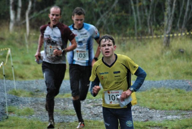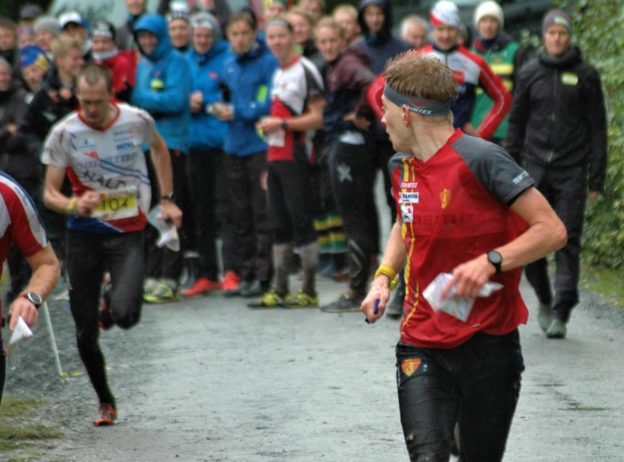 Kittilsen vekslet til slutt 2 sekunder før Lundanes. Så var det Håvard Sandstad Eidsmo sin tur på siste etappe. Han lå likt med Magne Dæhli gjennom hele løpet. Men får ei lita luke på siste post. Da snur han seg for å se etter Dæhli.