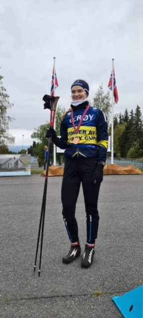 Det ble en suksesshelg for Mari under NM rulleskiskyting i Lillehammer. I dag ble det NM-sølv på fellesstarten etter et veldig bra gjennomført renn. Hun lå høyt oppe under hele rennet med god skyting og god fart i sporet. På resultatlisten ble det 3. plass, men 2. plassen gikk med utenlandsk statborgerskap slik at det ble sølv i NM. Med en 5. plass på gårsdagens sprint og tidligere gode plasseringer i Lerøy-cup rulleskiskyting ble det også sammenlagtseier i cupen. Vi gratulerer!
