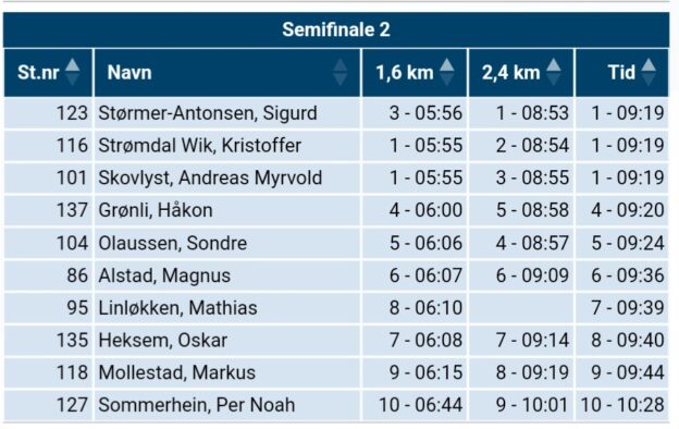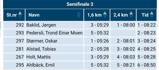 I semifinalene ble både Magnus og Filip Mitchell Iversen fra Verdal OK nummer 6 i sine heat. De tre beste fra hvert heat gikk videre til finalen. Magnus var 17 sekunder fra finaleplss, og nærmest av disse to.