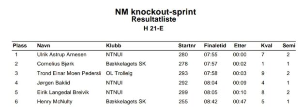 -Jeg ble nok litt for snill i mitt heat. Ingen ville legge seg først og dra feltet, så det ble til at jeg gjorde det. Det gikk fort unna, og de bak meg fikk nok litt bedre tid til å forberede seg på de siste og avgjørende strekkene. Men jeg føler at jeg ligger foran skjema nå med tanke på vinterens skadeprgede trening. Så løpene i helga har vært skikkelig oppløftende. Spesielt fredagens andreplass i Norgescupsprinten var god. Der har jeg bare 6-7 sekunder nølende tidstap på hele løypa. Det er til høsten de viktigste løpene kommer, og da håper jeg å kunne representere Norge internasjonalt.