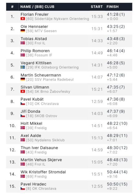 Eliteklassen ble vunnet av sveitseren Florian Freuler. Han var 2.20 raskere enn Tobias. Martin Vehus Skjerve ble nummer 13.