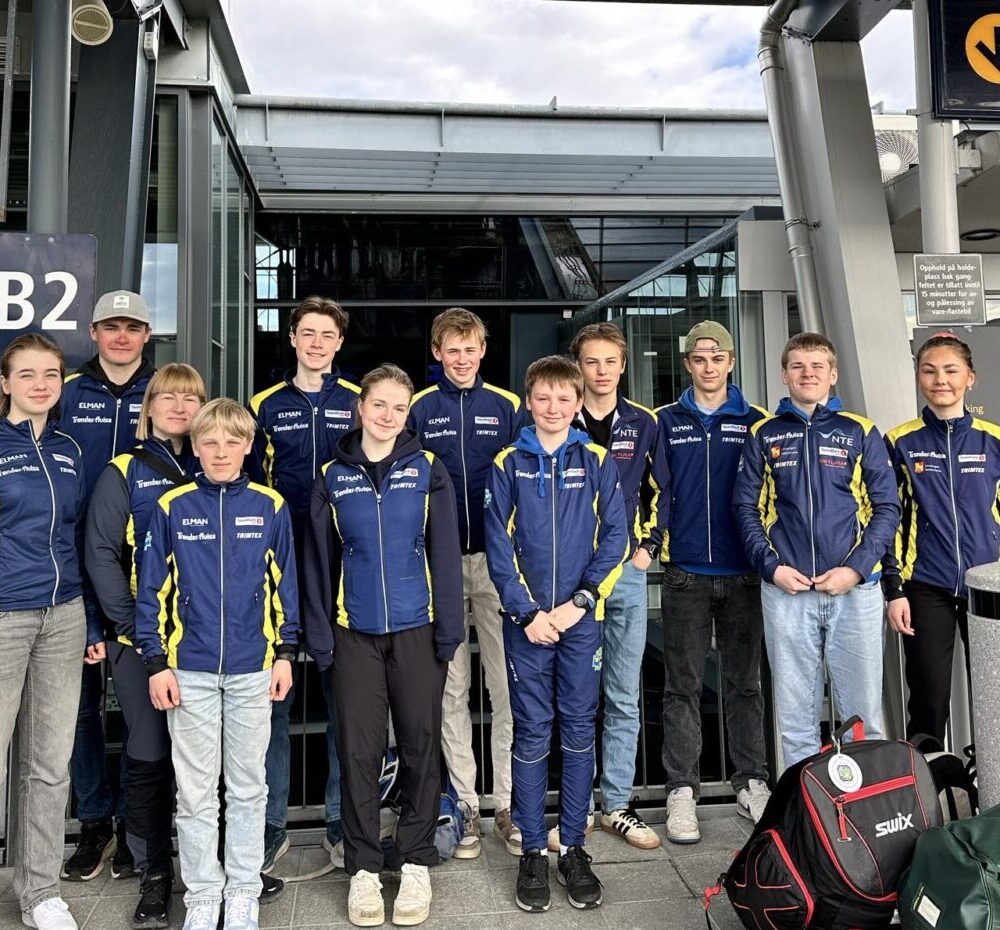 I dag reiste 35 løpere fra NTOK til Halden for å delta i helgas Halden O-meeting. Av disse var 15 løpere fra Frol. Her er en del av dem samlet før flyavgang på Værnes.