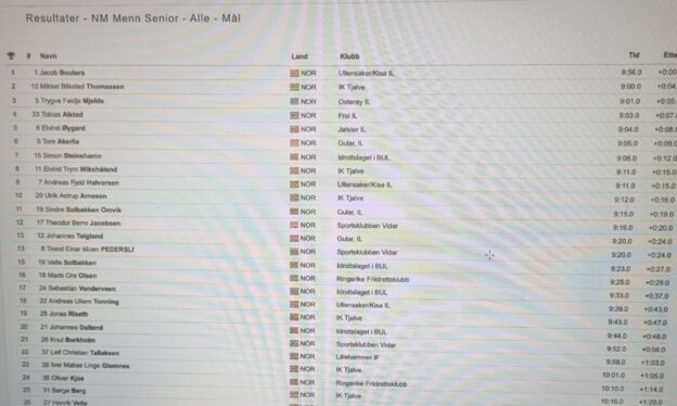 -Nå er det fullt fokus på sprintorientering framover. Men dette var jo artig, så kanskje slenger jeg meg med i NM lang løype til høsten også. Om det passer inn mellom o-løpene. Det er jo artig å få testet seg opp mot gode friidrettsløpere, og føle på farten de holder. Opplegget i dag passet godt. Det gikk rolig på den første runden slik at jeg kom godt i gang. Da lå jeg og Ulrik Astrup Arnesen (O-løper) som nummer 2 og 3. Etterhvert ble farten skrudd opp, og da kom det mange gode løpere opp og ville være med i tetkampen. Kroppen fungerte godt i dag, og til tider syntes jeg det gikk lett. Jeg hadde heldigvis en god del på lager til sluttspurten, så da ble det ikke langt unna pallen til slutt.