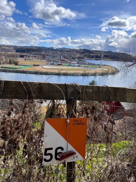 Post nr 56, i Staupsmarka på årets O-Tramp har fin utsikt over idrettsanlegget på Moan.