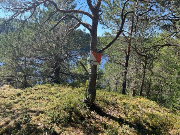 Parkering på parkeringsplass forbi Langåsdammen (merket på kartet). Posten er satt ut, og henger ute til og med søndag 2.juni. Litt finurlig kanskje, men selv om ukas post er på Tvårråsjøen-kartet, ligger posten rett ved et annet vann, Langåsdammen.