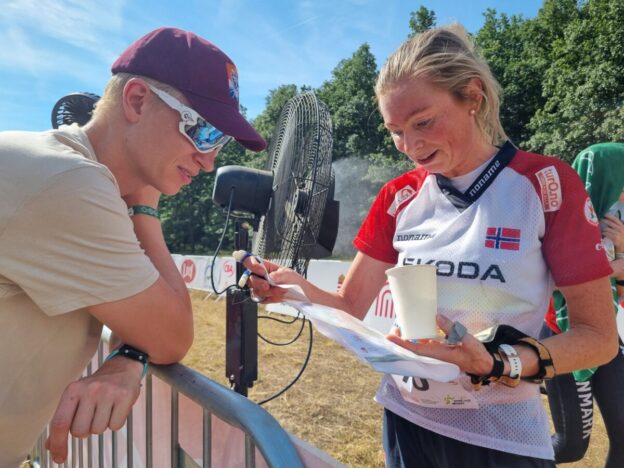 Paul var veldig godt fornøyd med Gørils gjennomføring i dag. Gøril sprank med brekket litt på, for ikke å gå på noen bom. Og for å holde ut i varmen. Med trygg løping gikk hun nesten klokkerent. Gøril var også veldig fornøyd med Pauls arbeid i forkant av EM. De har studert gamle kart og flybilder over terrengene. Paul kunne fortelle at han hadde tippet bådde riktig startplass og en del aktuelle strekk. Godt jobbet!