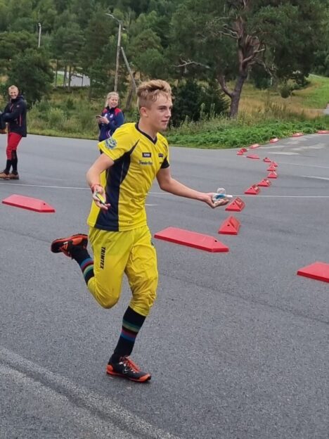Klubbens lag i H 13-16 klarte det beste resultatet av våre i dagens stafetter i Midt-Norsk. Ludvig, Sondre og Jonas kapret sølvet bak erkerivalene Freidig. Bildet er fra starten av stafetten der Ludvig raskt tok ledelsen og dro skikkelig i fra opp mot skogen.