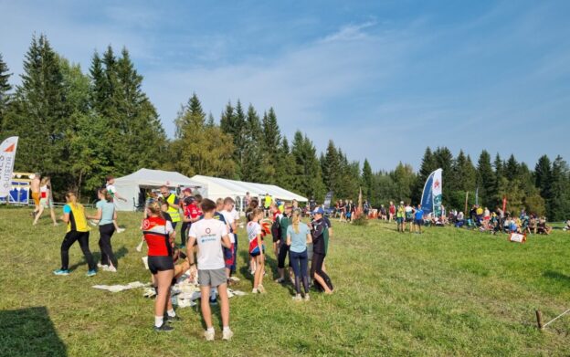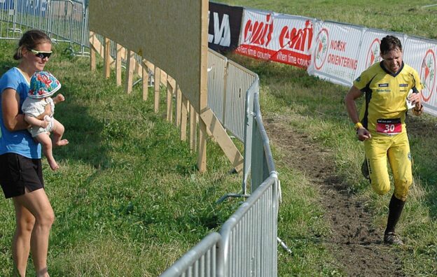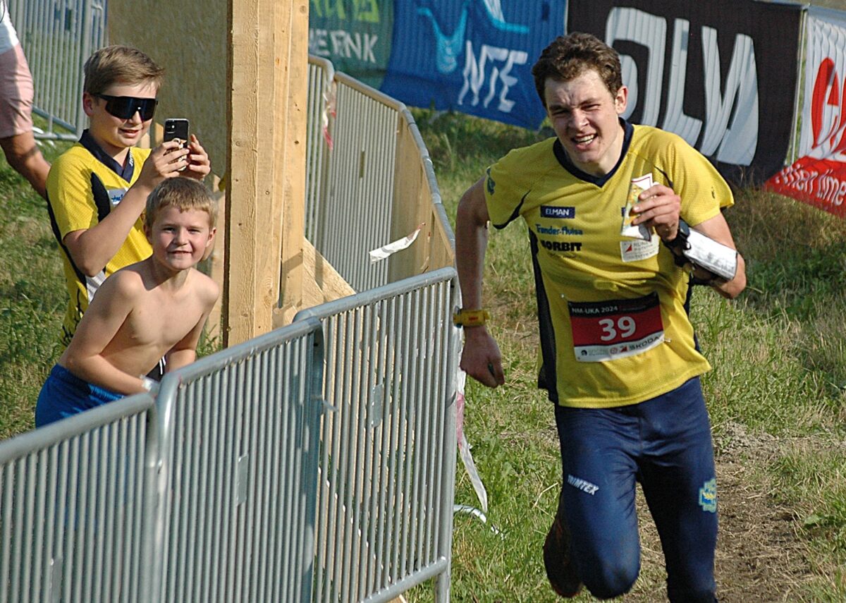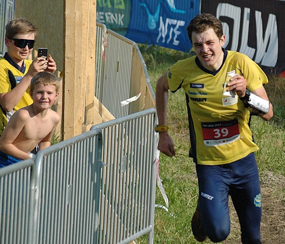 For Frol ble det enda en dag med flotte plasseringer. Det er ikke verst å få tre løpere inn topp ti i NM. På bildet heies Tobias inn til flott 8.plass i seniorklassen. Det hjelper med heiagjeng, for Tobias hadde suverent beste spurttid fra siste post til mål.