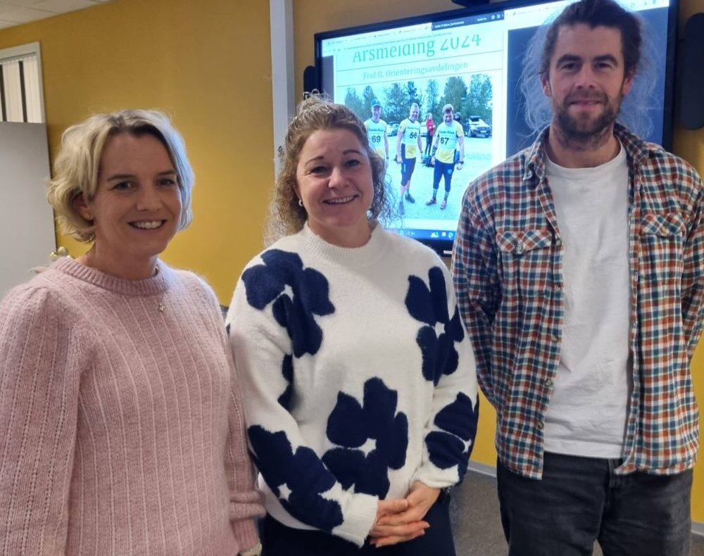 Leder i o-avdelingen, Lena Alstad, ble klappet inn for to nye år.  Videre fortsetter Jo  Langøygaard som nestleder, Rolf Alstad som regnskapsfører, Eivind Ness-Jensen som leder i sportslig utvalg og Odd Anders Alstad som leder i teknisk.  Astrid Svendgård gikk av som leder i rekrutteringskomiteen og Sondre Lomsdal som leder i trimkomiteen.  På bildet blir Astrid og Sondre takket av Lena. Ny leder i rekrutteringskomiteen ble Ann Kristin Alstad, mens trimkomiteen konstituerer seg selv på første møte.