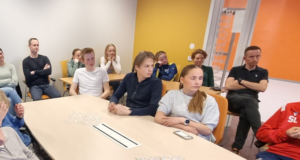 Det var fullt hus da ungdommenes o-tekniske kurs startet i går kveld. Med 22 påmeldte var det rett og slett ikke plass til flere i møterommet vi hadde i Trønderhallen. Arild Vassenden hadde en lydhør forsamling av ungedom og noen foreldre, og det virket som flere fikk noen a-ha-opplevelser og nyttige tips for hvordan de skal komme lettere rundt i o-løypa i sommer. Målet med kurset er rett og slett at det skal bli morsommere å gjennomføre f.eks. O-Sjuern med mer o-teknisk kunnskap innabords. De yngste deltagerne i går kveld imponerte med vettuge spørsmål og mange gode svar. Kurset fortsetter neste uke. Da skal deltagerne bl.a. løse mye veivalgsproblematikk.