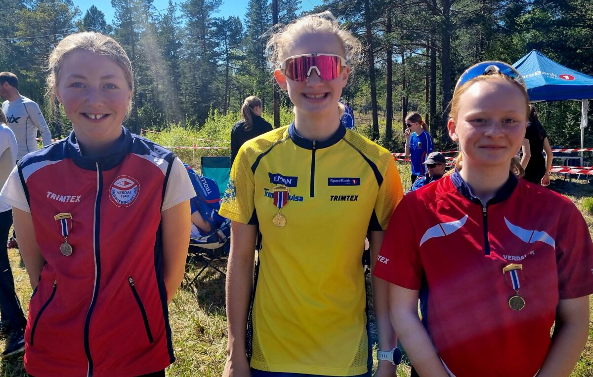 I D 13-14 (bildet over) ble det gull til Ingeborg Dybdahl. Verdalingene Ingrid Gudding og Heidi Rånes tok sølv og bronse.