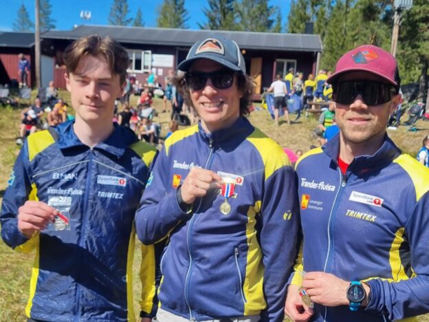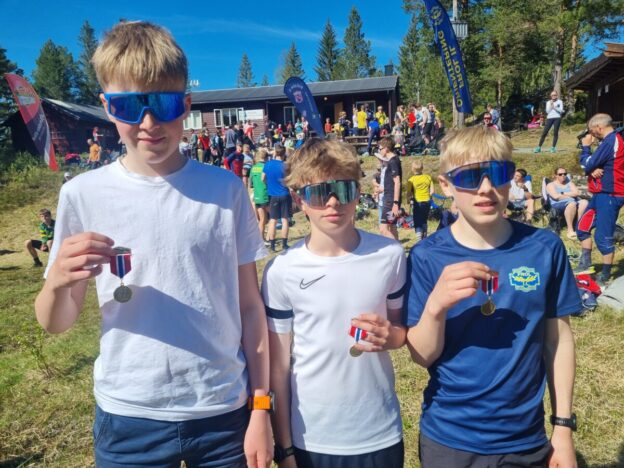 Medaljetrioen i H 13-14. F.v. Johannes Gudding, Verdal OK sølv, Erik Sæther Fossum, Stj.Blink gull, og Aksel Sandstad Skjeset, Frol med bronse.