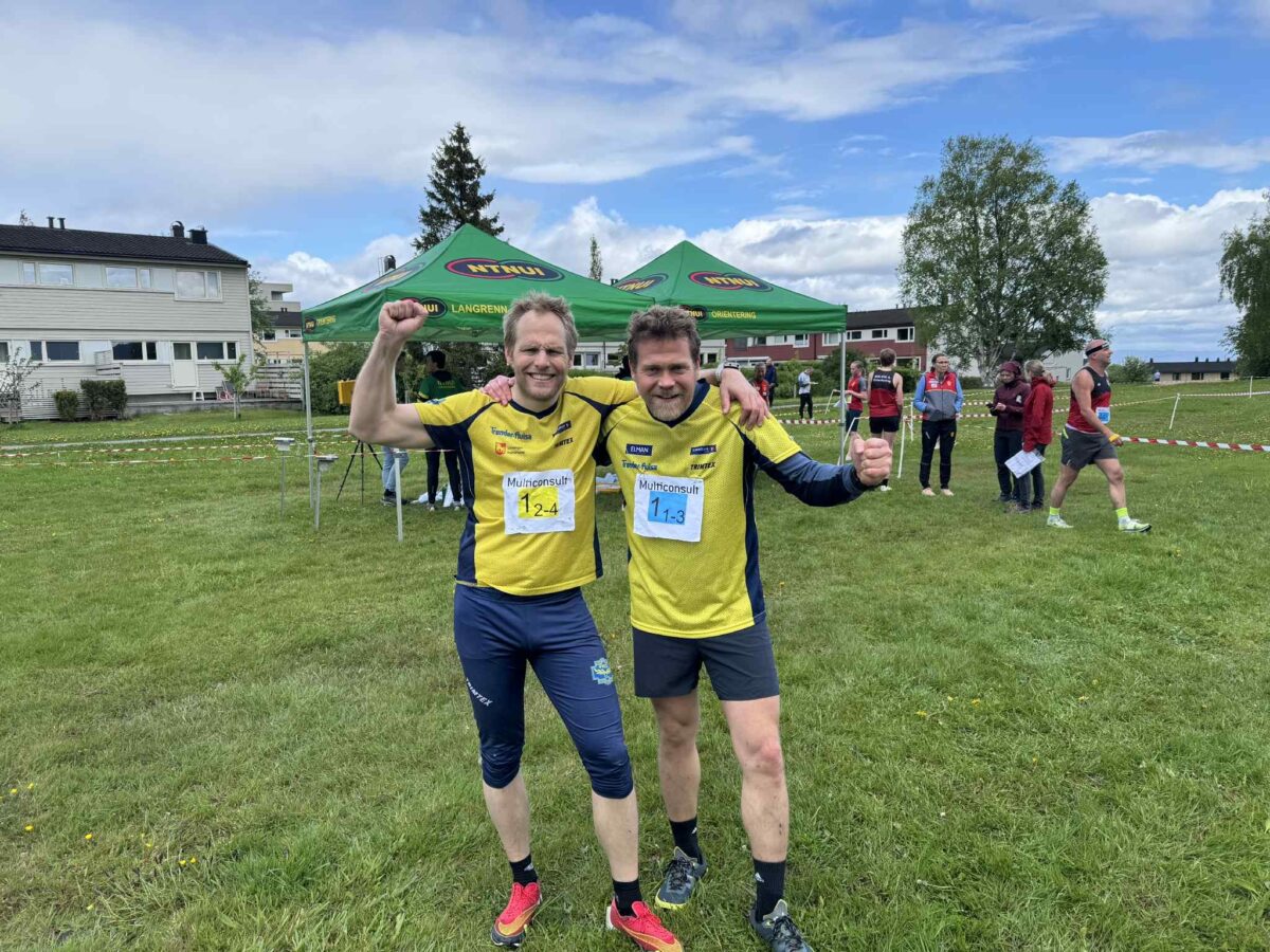 På herresiden ble det også en dramatisk start da førsteetappeløperen ikke fant startposten på kartet! Det viste seg at det var kartsnu og i hurten og sturten ble kartet snudd 180 grader feil og Frol-løperen spurtet i motsatt retning av det øvrige startfeltet! Men, den rutinerte løperen innså feilen og snudde fort, og derfra var det god flyt for begge løperne fra Frol!