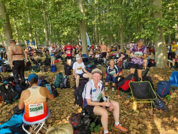 2400 løpere prøvde å finne skygge på arena. Det ble folksomt under trærne.