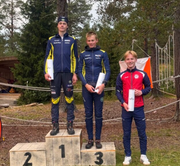 Jonas og Ludvig på pallen, sammen med Adam Hvesser fra Verdal OK som ble nummer 4.