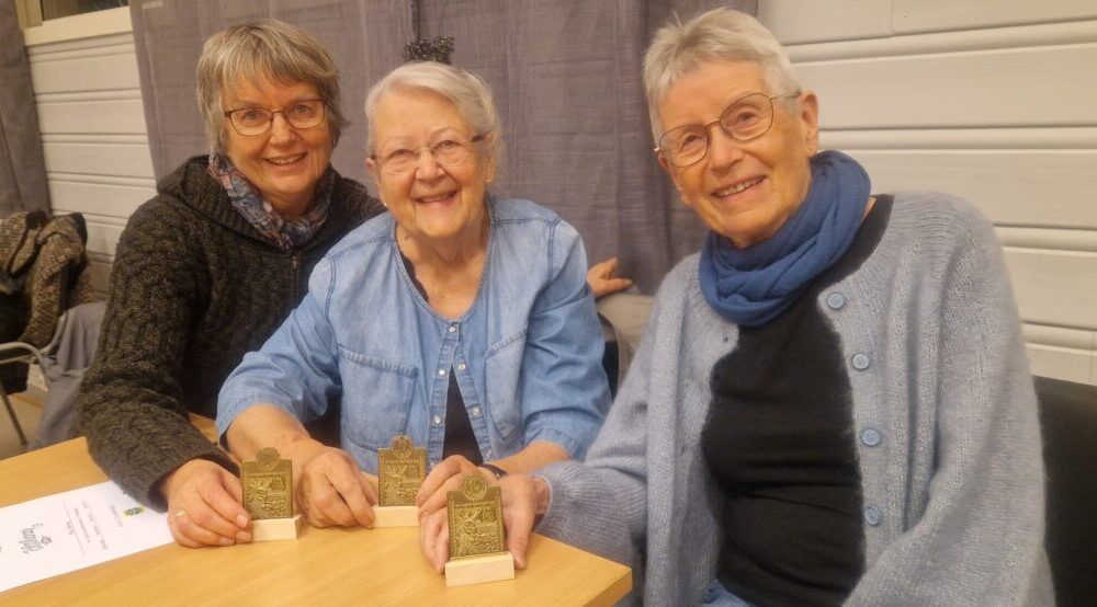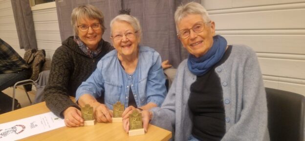 På årets avslutning av O-trampen fikk Anne Grete Otlo og Solveig Otlo plakett for 35 år. Anne Kvam fikk plakett for 40 år!